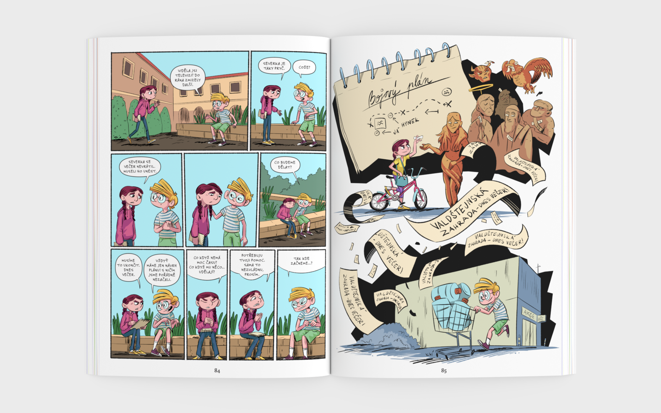 Stella nemrég költözött Prága belvárosába, amiért nem túlzottan lelkesedik. Az iskola nem tetszik, a város pedig egy nagy unalom – öreg házak, kopott homlokzatok és szobrok mindenhol. De aztán a padláson talál valamit, ami egy teljesen új világot tár fel a szeme előtt. Kateřina Šardická és Dan Krátký történetét Tomáš Kopecký illusztrálta.